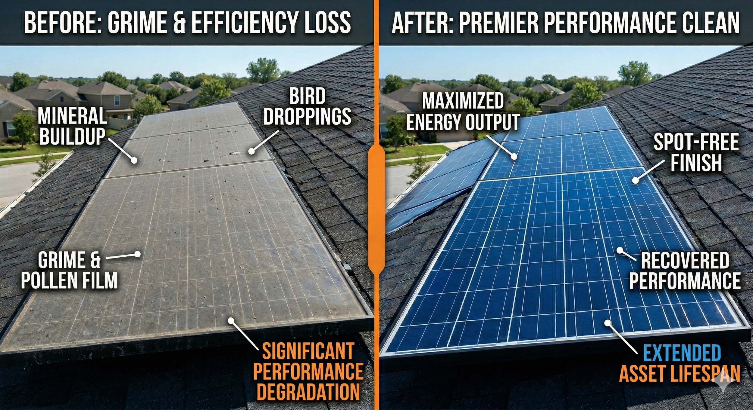 Output Optimization: By restoring the pristine surface of your panels, we immediately maximize their light-absorption capability, bringing your energy production back to its peak potential.